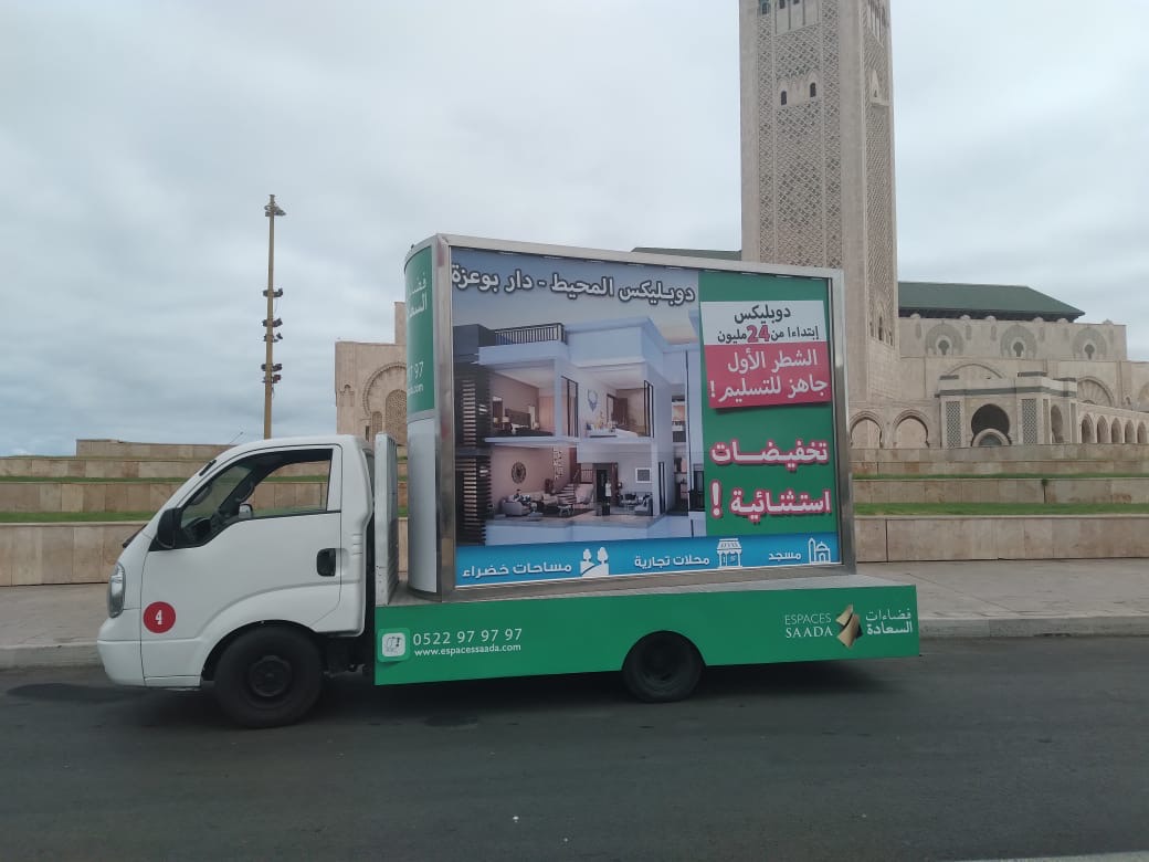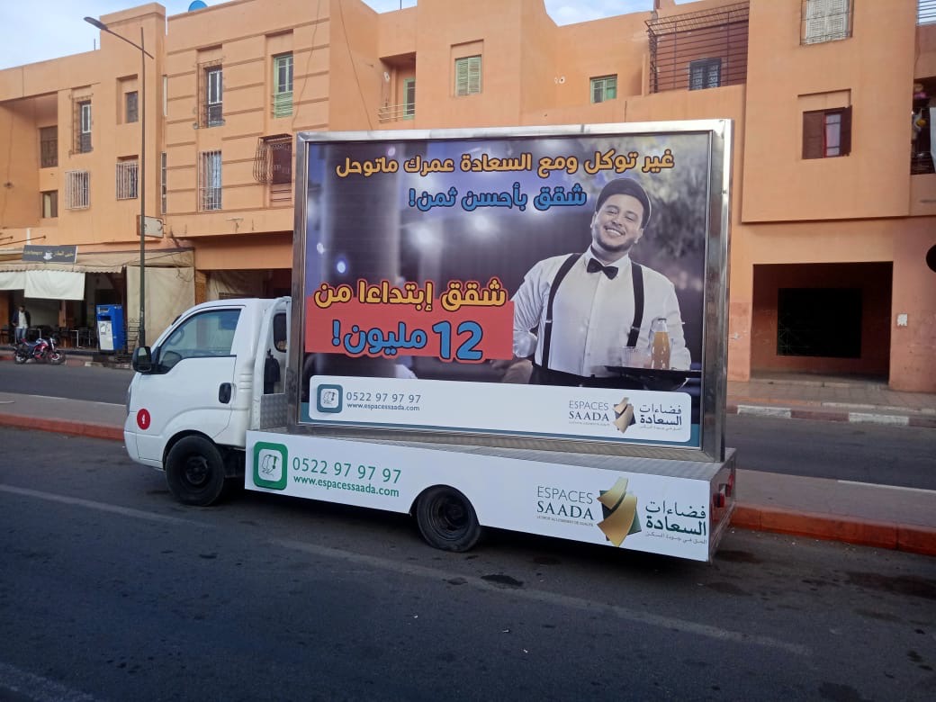 CAMION PUBLICITAIRE TRIEDRE Nous créons des belles choses BESOIN D'UN CAMION PUBLICITAIRE DANS UNE VILLE DU MAROC ? NOUS SOMMES LÀ POUR VOUS ! Discutons de votre projet